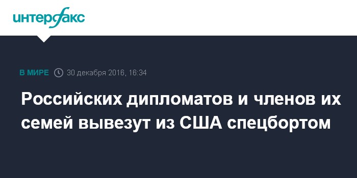 Москва. 30 декабря. INTERFAX.RU - Россия направит специальный самолет, чтобы вывезти из США российских дипломатов, которым американская администрация предписала покинуть страну, и членов их семей.