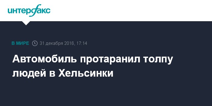 Москва. 31 декабря. INTERFAX.RU - Около семи человек получили травмы после того, как автомобиль протаранил толпу людей в Хельсинки, сообщают в субботу западные СМИ.