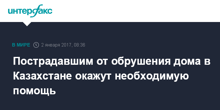 Пострадавшим от обрушения дома в Казахстане окажут необходимую помощь
