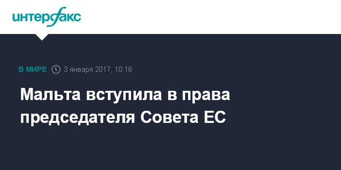 Москва. 3 января. INTERFAX.RU - Мальта в первый день 2017 года заняла в порядке ротации государств-членов ЕС председательский пост в Совете Европейского союза.