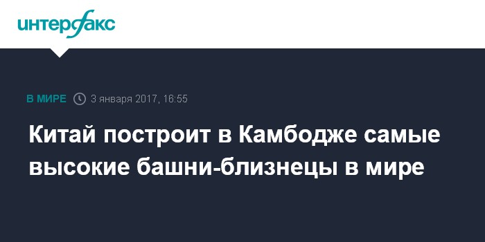 Китай построит в Камбодже самые высокие башни-близнецы в мире
