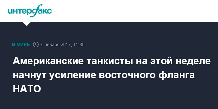 Москва. 6 января. INTERFAX.RU - На этой неделе для усиления восточного фланга НАТО в Европу начнут прибывать военнослужащие танковой бригады США, сообщило в пятницу Польское радио.