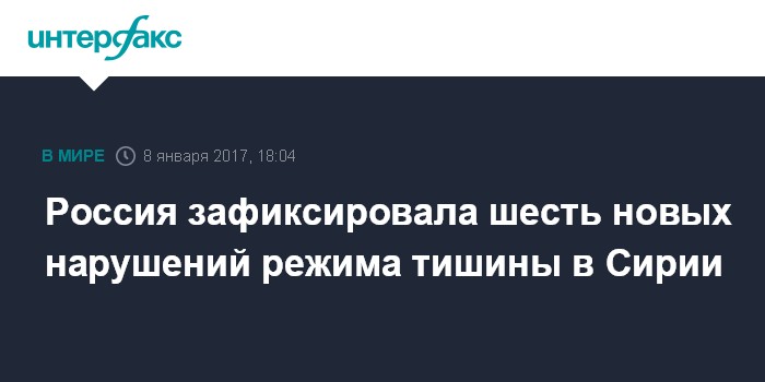 "Российской частью представительства совместной российско-турецкой комиссии по рассмотрению вопросов, связанных с нарушениями Единого Соглашения за сутки зафиксировано 6 нарушений, из них в провинциях: Латакия - 3, Хама - 2, Алеппо - 1. Турецкой частью представительства зафиксировано 18 нарушений, из них в провинциях: Дамаск - 4, Хама - 4, Идлиб - 4, Алеппо - 3, Хомс - 2, Деръаа - 1", - говорится в бюллетене российского центра по примирению враждующих сторон в Сирии.