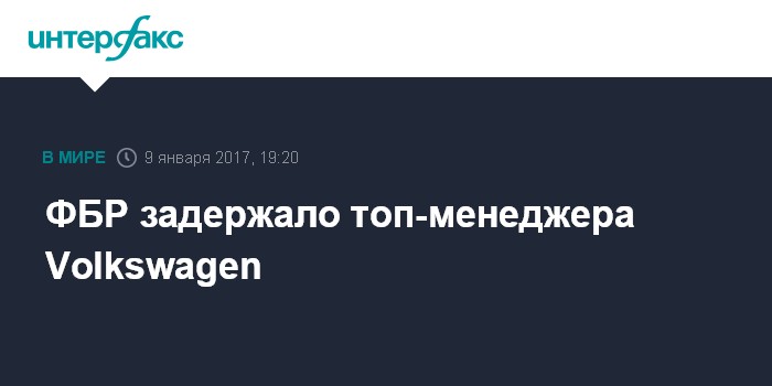Москва. 9 января. INTERFAX.RU - Федеральное бюро расследований (ФБР) задержало топ-менеджера германского автоконцерна Volkswagen AG Оливера Шмидта по подозрению в причастности к скандалу с занижением показателей выброса вредных газов, сообщает газета The New York Times со ссылкой на информированные источники.