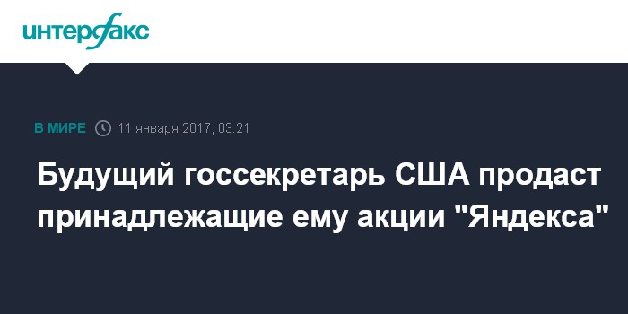 Будущий госсекретарь США продаст принадлежащие ему акции "Яндекса"