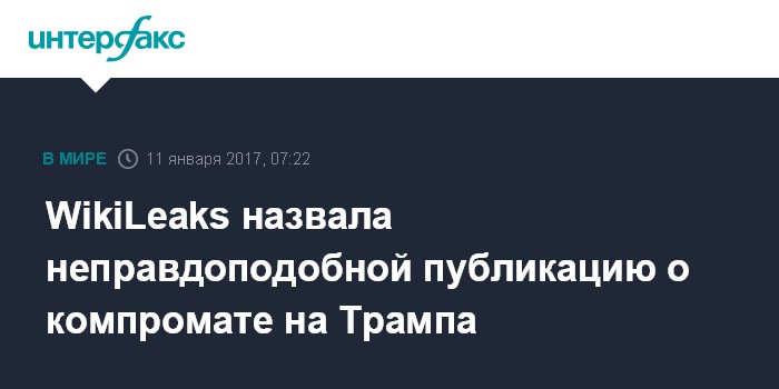 Москва. 11 января. INTERFAX.RU - Опубликованный в СМИ документ, содержащий информацию о возможном компромате "российских агентов" на избранного президента США Дональда Трампа, неправдоподобен, считает организация WikiLeaks.
