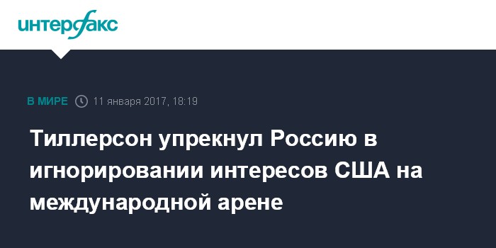 Тиллерсон упрекнул Россию в игнорировании интересов США на международной арене