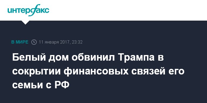 Москва. 11 января. INTERFAX.RU - Избранный президент США Дональд Трамп скрывает свои финансовые связи с Россией, заявил в среду представитель Белого Дома Джош Эрнест.