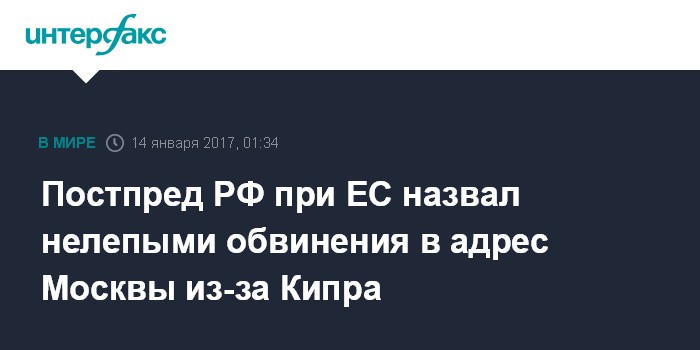 Постпред РФ при ЕС назвал нелепыми обвинения в адрес Москвы из-за Кипра