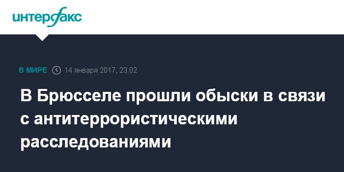 Москва. 14 января. INTERFAX.RU - Прокуратура Брюсселя провела в субботу в столичной коммуне Моленбек несколько обысков в рамках расследования дел о терроризме, сообщил интернет-сайт RTL Info.