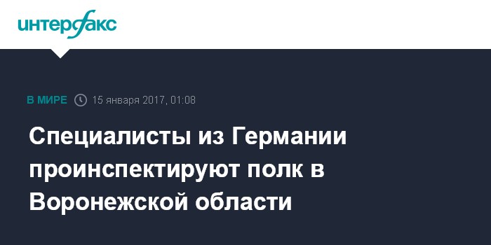 Москва. 15 января. INTERFAX.RU - Германские военные инспекторы в период с 16 по 19 января посетят 252 мотострелковый полк, дислоцированный в городе Богучар Воронежской области, сообщает Минобороны РФ.