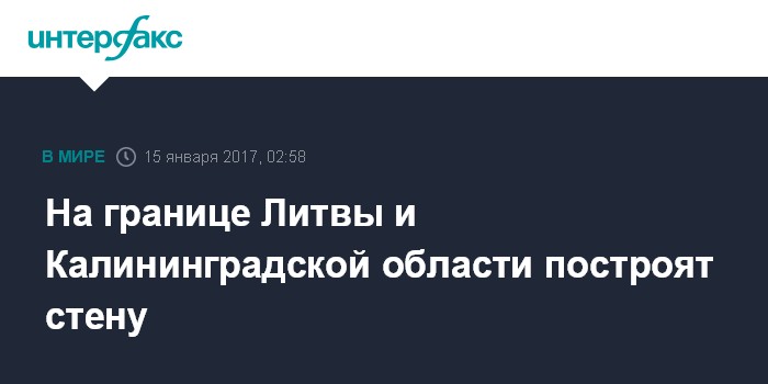 Москва. 15 января. INTERFAX.RU - Федеральный бюджет Литвы на 2017 год содержит в себе расходы на строительство стены на границе с Калининградской областью РФ. Как пишет издание Lietuvos žinios, Вильнюс выделит €3,6 млн на строительство забора.