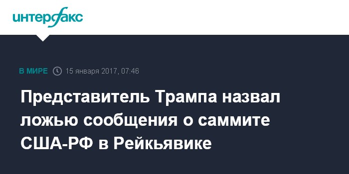 "Это неправда. Новость - 100% ложная", - написал Спайсер у себя в микроблоге в "Твиттере", приложив к сообщению ссылку на информацию о том, что Трамп якобы хочет провести встречу в Рейкьявике с Путиным.