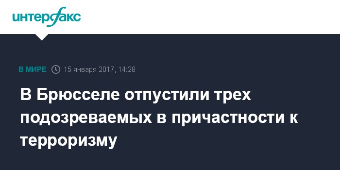 Москва. 15 января. INTERFAX.RU - Прокуратура Брюсселя сообщила в воскресенье, что трое задержанных накануне в ходе полицейской операции в столичной коммуне Моленбек подозреваемых освобождены после допроса.