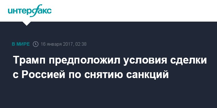 Отвечая на вопрос о возможной сделке с Россией, Трамп сказал, что вопрос о ядерном оружии должен стать ее частью, а ядерные арсеналы должны быть "очень значительно сокращены" в обмен на снятие санкций США с РФ.