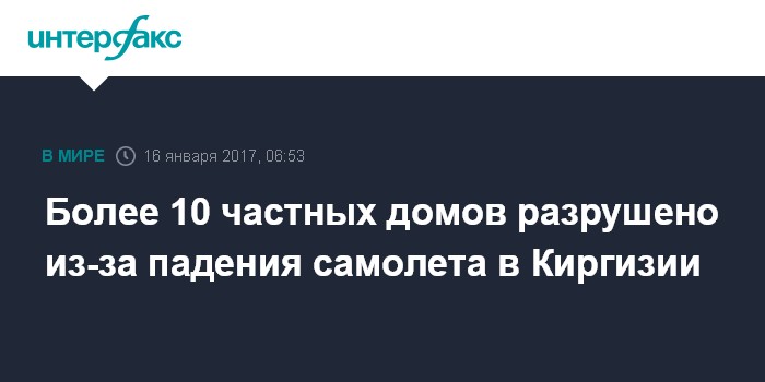 Москва. 16 января. INTERFAX.RU - Не менее 10 частных домов разрушено в дачном поселке неподалеку от киргизского аэропорта "Манас" в районе падения грузового "Боинга-747" компании Turkish Airlines, сообщило в понедельник МЧС Киргизии.