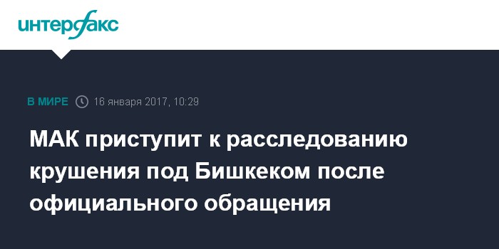 МАК приступит к расследованию крушения под Бишкеком после официального обращения