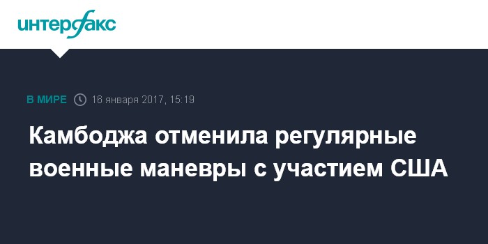 Москва. 16 января. INTERFAX.RU - Правительство Камбоджи проинформировало Вашингтон о решении отменить в этом году совместные военные учения с США, проходившие ранее на ежегодной основе. Об этом сообщает агентство The Associated Press со ссылкой на министерство обороны Камбоджи.