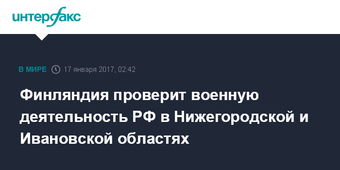 Финляндия проверит военную деятельность РФ в Нижегородской и Ивановской областях