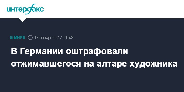 Москва. 18 января. INTERFAX.RU - Окружной суд немецкого Саарбрюкена оштрафовал художника Александра Карле на 700 евро за перфоманс в местной католической церкви Святого Иоанна.
