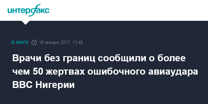 Врачи без границ сообщили о более чем 50 жертвах ошибочного авиаудара ВВС Нигерии