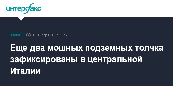 Москва. 18 января. INTERFAX.RU - Еще два сильных подземных толчка произошли в среду на территории центральной Италии, сообщает Европейский сейсмологический центр.