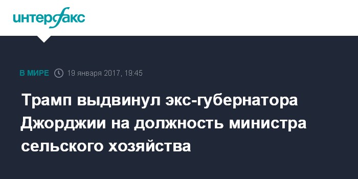 Трамп выдвинул экс-губернатора Джорджии на должность министра сельского хозяйства