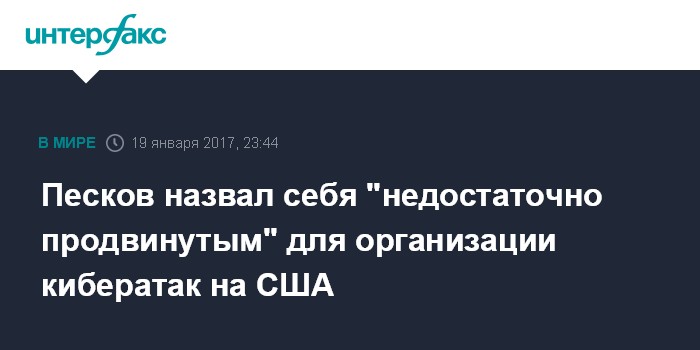 Песков назвал себя "недостаточно продвинутым" для организации кибератак на США