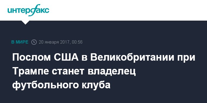 Послом США в Великобритании при Трампе станет владелец футбольного клуба