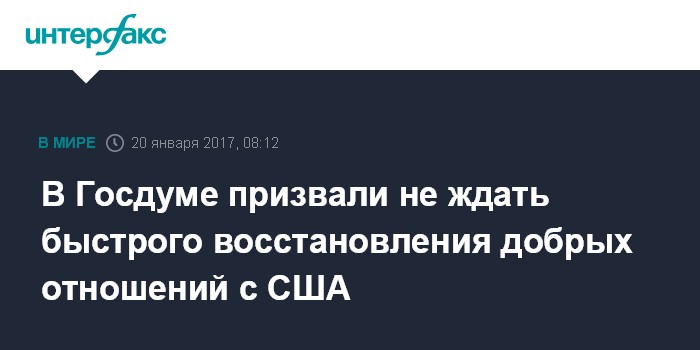 В Госдуме призвали не ждать быстрого восстановления добрых отношений с США