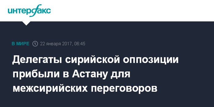 Москва. 22 января. INTERFAX.RU - Для участия в переговорах в Астану прибыли делегации сирийской оппозиции, сообщил руководитель пресс-службы МИД Казахстана Ануар Жайнаков.