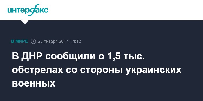 Москва. 22 января. INTERFAX.RU - За сутки в самопровозглашенной Донецкой народной республике зафиксировали 1428 нарушений режима прекращения огня со стороны Вооруженных сил Украины.