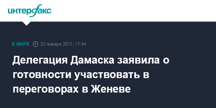 Делегация Дамаска заявила о готовности участвовать в переговорах в Женеве