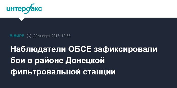Наблюдатели ОБСЕ зафиксировали бои в районе Донецкой фильтровальной станции
