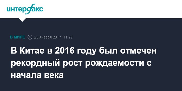 В Китае в 2016 году был отмечен рекордный рост рождаемости с начала века