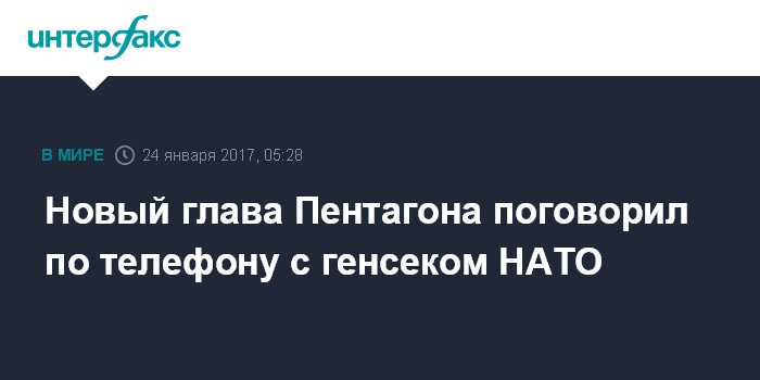 Москва. 24 января. INTERFAX.RU - Вступивший в должность главы Пентагона Джеймс Мэттис провел в понедельник телефонный разговор с Генсекретарем НАТО Йенсом Столтенбергом, в ходе которого они договорились лично встретиться в следующем месяце, сообщил представитель Минобороны США Джефф Дэвис.