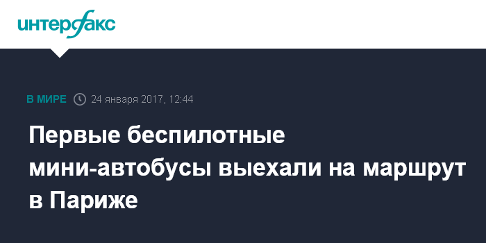 Москва. 24 января. INTERFAX.RU - Власти Парижа запустили в городе первые два беспилотных мини-автобуса с электрическими двигателями, сообщает "Би-би-си".