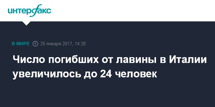 Число погибших от лавины в Италии увеличилось до 24 человек