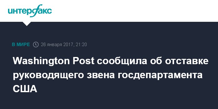 Москва. 26 января. INTERFAX.RU - Все высшие руководители госдепартамента США покинули свои посты, пишет в четверг американская газета The Washington Post.