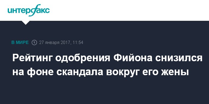 Рейтинг одобрения Фийона снизился на фоне скандала вокруг его жены