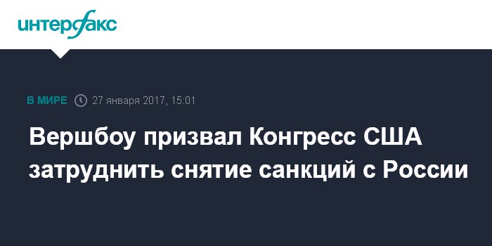 Москва. 27 января. INTERFAX.RU - Бывший заместитель генерального секретаря НАТО Александр Вершбоу в пятницу обратился с призывом к американскому конгрессу принять меры, которые бы осложнили процедуру снятия санкций против России.