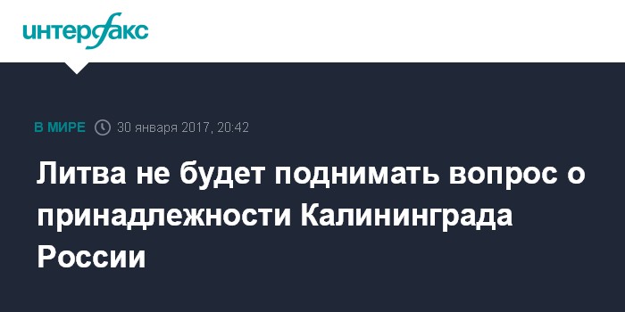Москва. 30 января. INTERFAX.RU - Министерство иностранных дел Литвы не намерено поднимать вопрос о статусе Калининградской области.