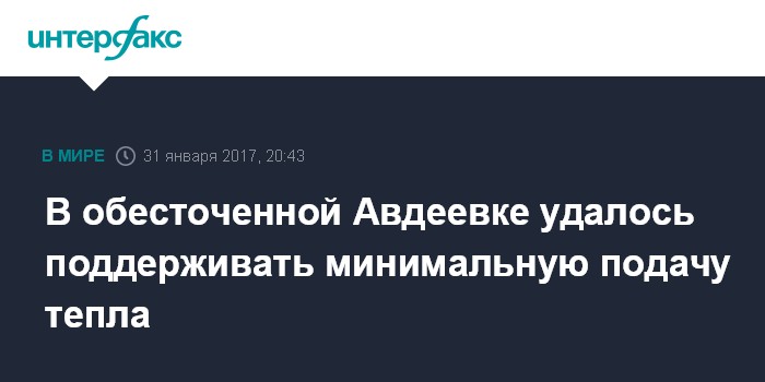 Москва. 31 января. INTERFAX.RU - Властям удается поддерживать минимальный уровень подачи тепла в объекты инфраструктуры обесточенного из-за обстрелов в зоне конфликта в Донбассе города Авдеевка Донецкой области Украины, заявил украинский премьер-министр Владимир Гройсман.