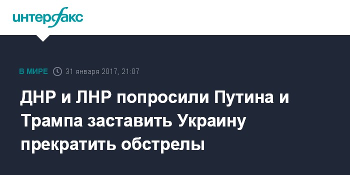 ДНР и ЛНР попросили Путина и Трампа заставить Украину прекратить обстрелы