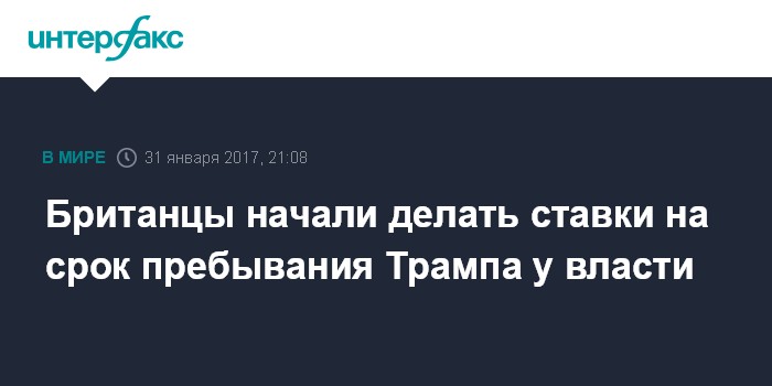 Москва. 31 января. INTERFAX.RU - Британцы делают ставки на то, что Дональд Трамп не продержится на посту президента США и года, сообщила во вторник британская букмекерская компания Ladbrokes.