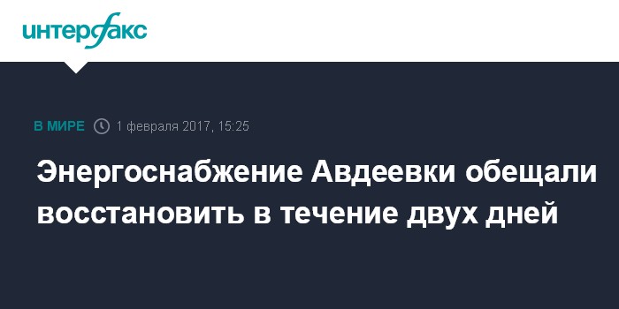 Энергоснабжение Авдеевки обещали восстановить в течение двух дней