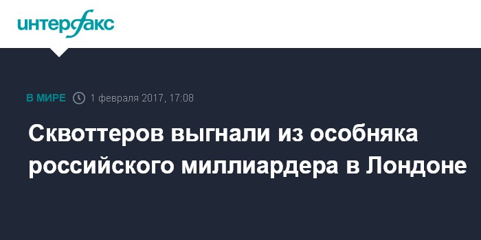 Москва. 1 февраля. INTERFAX.RU - Сквоттеров-анархистов, захвативших особняк российского бизнесмена в престижном районе Лондона Белгравия, выгнали из здания, пишет The Guardian.