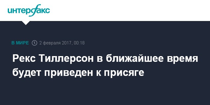 Рекс Тиллерсон в ближайшее время будет приведен к присяге