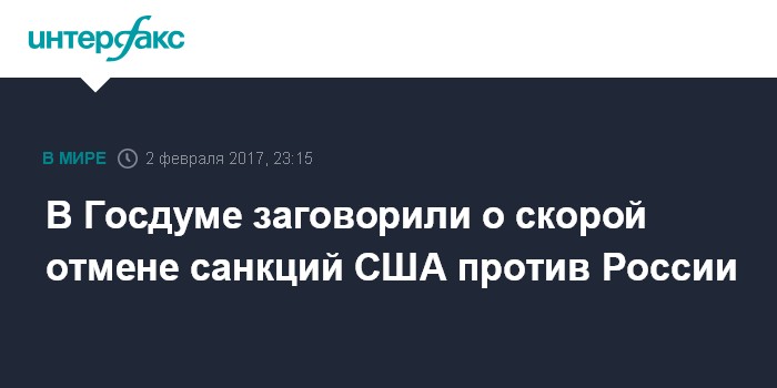 "Я думаю, что это первая ласточка, такой сигнал. Это санкции, которые Обама ввел в закрывающуюся дверь перед своим уходом. Эти санкции были импульсивными, скорее для того, чтобы насолить и усложнить возможность отмены санкций", - сказал Аксаков "Интерфаксу" в четверг.