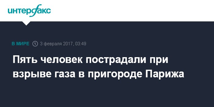 Москва. 3 февраля. INTERFAX.RU - Пять человек пострадали при взрыве газового баллона в пригороде Парижа, сообщает в пятницу газета Le Parisien.